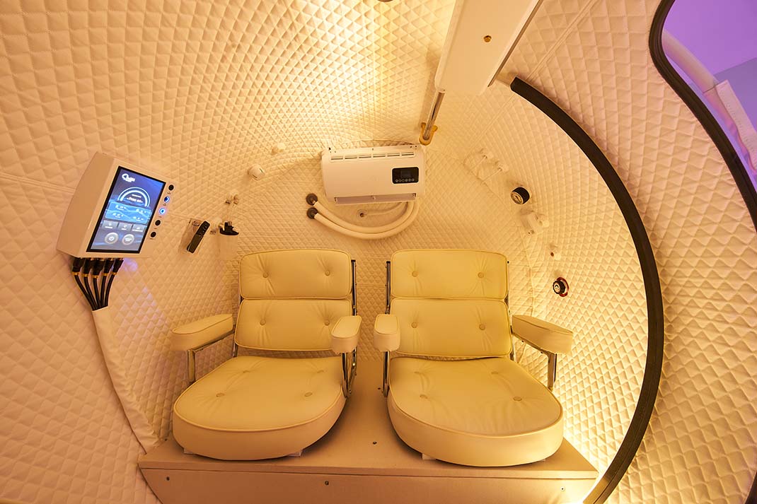 The standard treatment time of 60 – 90 minutes can have a positive impact. Our chamber comes with a dim interior light to allow patient relaxation, while still allowing them to read a book.