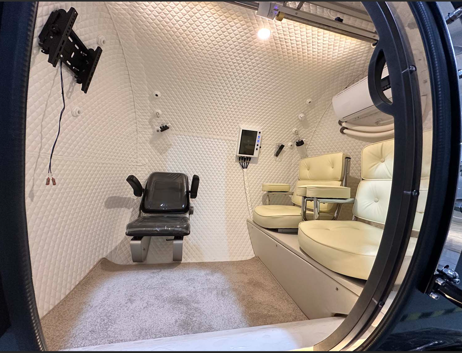 International Sales: We sell internationally and can provide our systems to your international voltage and plug type requirements. A Positive Patient Experience Our HBOT chamber comes equipped with all of the essentials to ensure your sessions run smoothly. The interior is designed to be as comfortable as possible, with our large window positioned to minimize the effects of claustrophobia and keep the patient relaxed. Air Conditioner The inclusion of a dehumidifier (built into the all-in-one compressor) unit is a great addon the is free with this unit. However, In a confined space or where the room temperature is not adjustable to the optimal 68 degrees or lower, the treatment might become slightly uncomfortable for some patients. An air conditioning unit can be integrated and allows you to maintain a more constant temperature inside the chamber is available at an additional cost with this chamber.