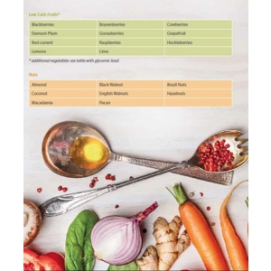The vegetables and fruits most appropriate for our metabolic regulation program are listed in the table on the following pages. Fruits not listed below should only be chosen according to the amount of glycemic load and within the general low carb regime which can differ according to your overall aims. For more details about glycemic load look in the internet. The carbohydrate amount should be between 30 g and 100 g/day depending on your general purposes and metabolic type.
